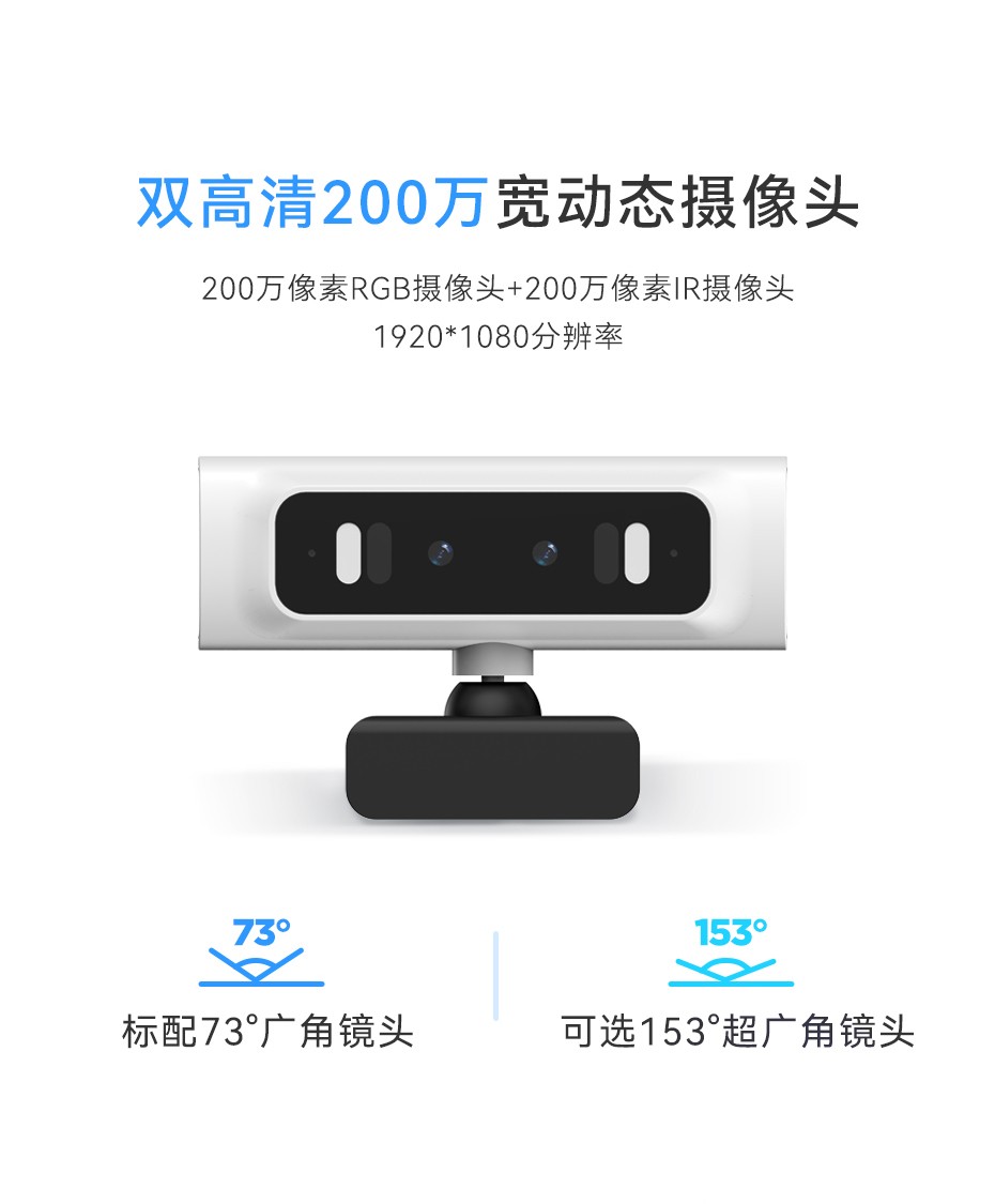 采用RGB+IR双目人脸动态识别摄像头,有效抵御照片、视频假冒等黑灰产攻击手段,